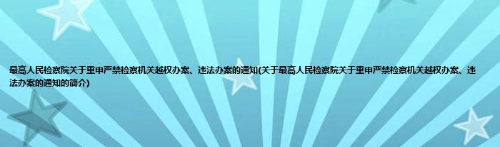 最高人民检察院关于重申严禁检察机关越权办案、违法办案的通知(关于最高人民检察院关于重申严禁检察机关越权办案、违法办案的通知的简介)