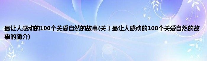 本文关于最让人感动的100个关爱自然的故事的简介就讲解完毕,希望对大家有所帮助。