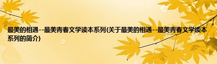本文关于最美的相遇--最美青春文学读本系列的简介就讲解完毕,希望对大家有所帮助。
