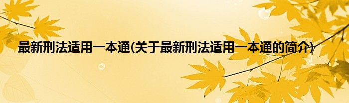 本文关于最新刑法适用一本通的简介就讲解完毕,希望对大家有所帮助。