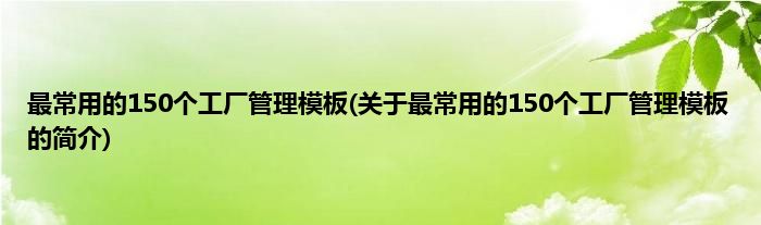 本文关于最常用的150个工厂管理模板的简介就讲解完毕,希望对大家有所帮助。