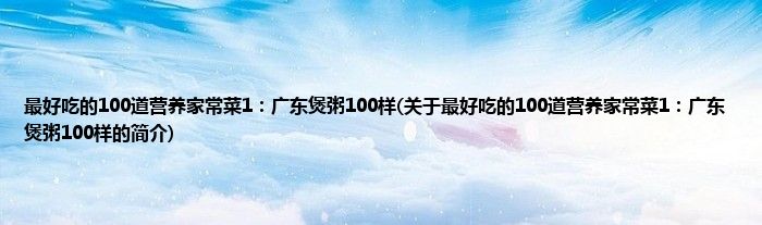 本文关于最好吃的100道营养家常菜1:广东煲粥100样的简介就讲解完毕,希望对大家有所帮助。