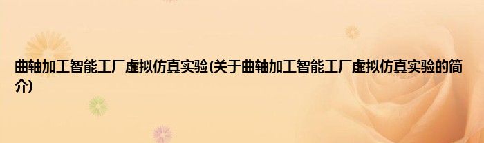 本文关于曲轴加工智能工厂虚拟仿真实验的简介就讲解完毕,希望对大家有所帮助。