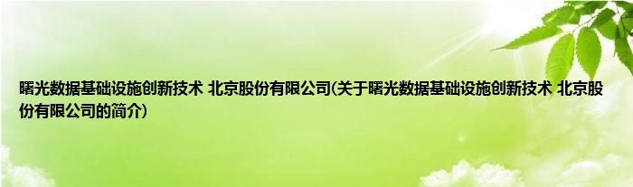 本文关于曙光数据基础设施创新技术 北京股份有限公司的简介就讲解完毕,希望对大家有所帮助。
