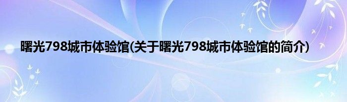 本文关于曙光798城市体验馆的简介就讲解完毕,希望对大家有所帮助。
