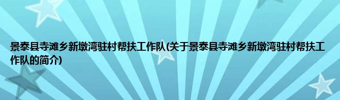 景泰县寺滩乡新墩湾驻村帮扶工作队(关于景泰县寺滩乡新墩湾驻村帮扶工作队的简介)