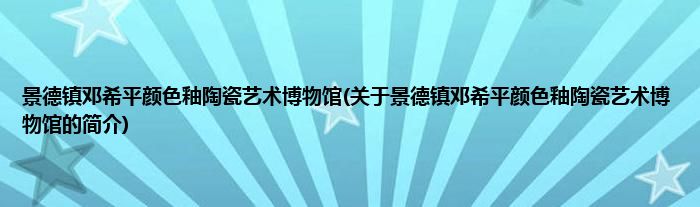 本文关于景德镇邓希平颜色釉陶瓷艺术博物馆的简介就讲解完毕,希望对大家有所帮助。