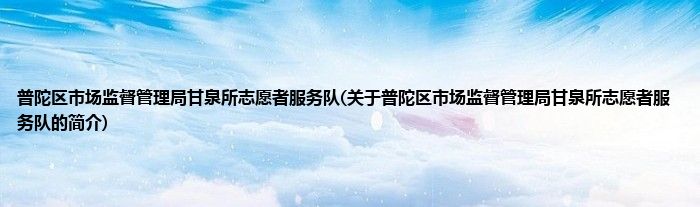 1、 普陀区市场监督管理局甘泉所志愿者服务队是由普陀区市场监督管理局志愿者服务队领导下的志愿团体。