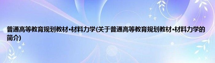 本文关于普通高等教育规划教材·材料力学的简介就讲解完毕,希望对大家有所帮助。