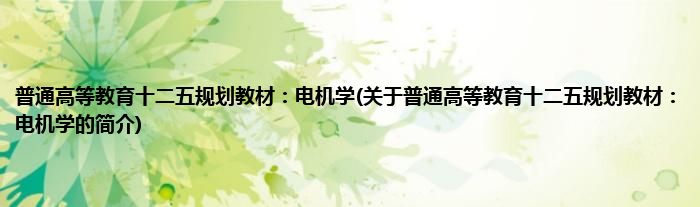 大家好,普通高等教育十二五规划教材:电机学,关于普通高等教育十二五规划教材:电机学的简介很多人还不知道,现在让我们一起来看看吧!