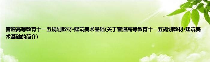 1、 《普通高等教育十一五规划教材·建筑美术基础》是中国电力出版社2009年出版的图书。