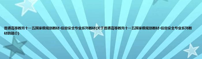 本文关于普通高等教育十一五国家级规划教材·信息安全专业系列教材的简介就讲解完毕,希望对大家有所帮助。