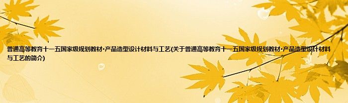 1、 《普通高等教育十一五国家级规划教材·产品造型设计材料与工艺》是2008年08月机械工业出版社出版的图书。