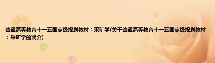 1、 《普通高等教育十一五国家级规划教材采矿学》是2009年中国矿业大学出版社出版的图书。