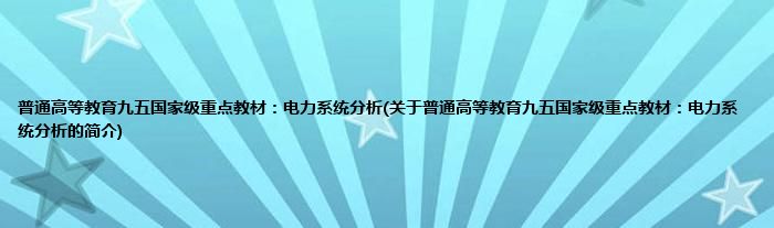 本文关于普通高等教育九五国家级重点教材:电力系统分析的简介就讲解完毕,希望对大家有所帮助。