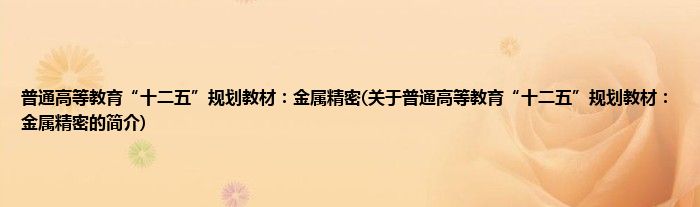 本文关于普通高等教育“十二五”规划教材:金属精密的简介就讲解完毕,希望对大家有所帮助。