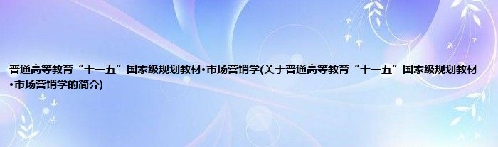 大家好,普通高等教育“十一五”国家级规划教材·市场营销学,关于普通高等教育“十一五”国家级规划教材·市场营销学的简介很多人还不知道,现在让我们一起来看看吧!