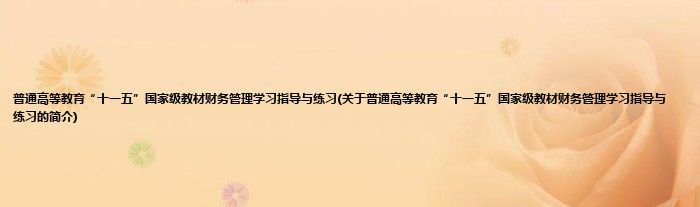1、 《普通高等教育“十一五”国家级教材财务管理学习指导与练习》是2011年出版的图书。