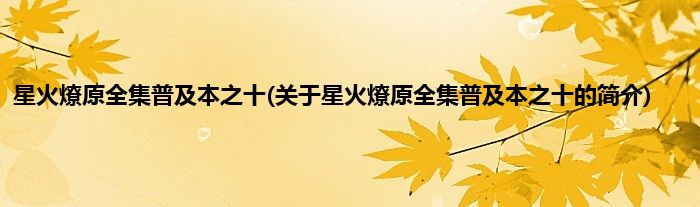 本文关于星火燎原全集普及本之十的简介就讲解完毕,希望对大家有所帮助。
