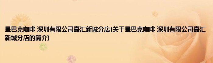 本文关于星巴克咖啡 深圳有限公司嘉汇新城分店的简介就讲解完毕,希望对大家有所帮助。