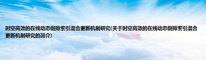 时空高效的在线动态倒排索引混合更新机制研究(关于时空高效的在线动态倒排索引混合更新机制研究的简介)