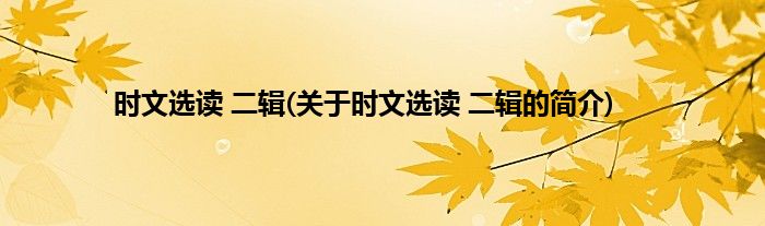 本文关于时文选读 二辑的简介就讲解完毕,希望对大家有所帮助。