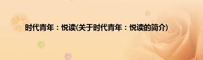本文关于时代青年:悦读的简介就讲解完毕,希望对大家有所帮助。