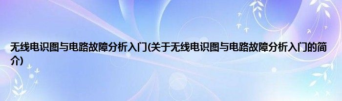 本文关于无线电识图与电路故障分析入门的简介就讲解完毕,希望对大家有所帮助。