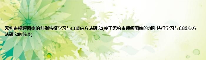大家好,无约束视频图像的判别特征学习与自适应方法研究,关于无约束视频图像的判别特征学习与自适应方法研究的简介很多人还不知道,现在让我们一起来看看吧!