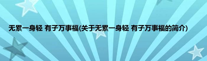 本文关于无累一身轻,有子万事福的简介就讲解完毕,希望对大家有所帮助。