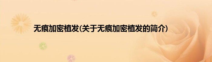本文关于无痕加密植发的简介就讲解完毕,希望对大家有所帮助。