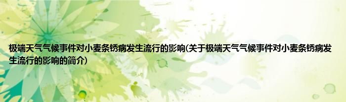 大家好,极端天气气候事件对小麦条锈病发生流行的影响,关于极端天气气候事件对小麦条锈病发生流行的影响的简介很多人还不知道,现在让我们一起来看看吧!