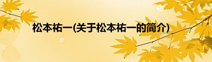 松本祐一(关于松本祐一的简介)
