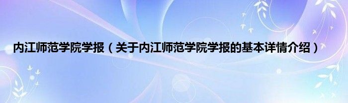 本文关于内江师范学院学报的基本详情介绍就讲解完毕,希望对大家有所帮助。