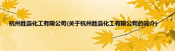 本文关于杭州胜霸化工有限公司的简介就讲解完毕,希望对大家有所帮助。