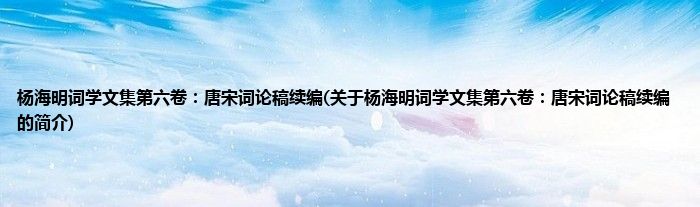 本文关于杨海明词学文集第六卷:唐宋词论稿续编的简介就讲解完毕,希望对大家有所帮助。