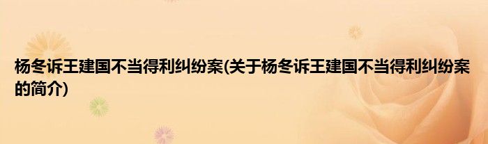 本文关于杨冬诉王建国不当得利纠纷案的简介就讲解完毕,希望对大家有所帮助。