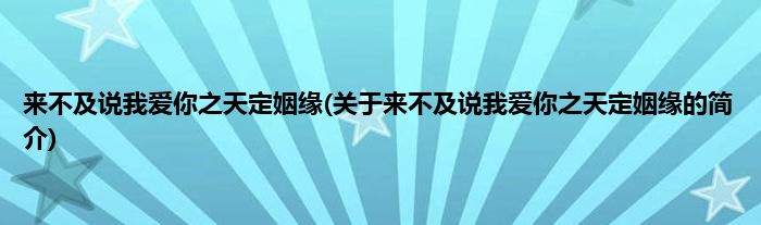 本文关于来不及说我爱你之天定姻缘的简介就讲解完毕,希望对大家有所帮助。