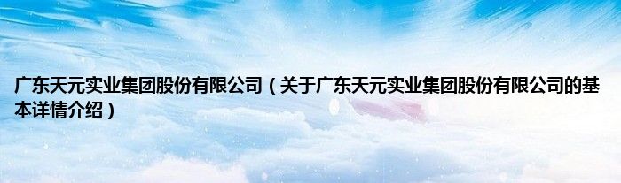 本文关于广东天元实业集团股份有限公司的基本详情介绍就讲解完毕,希望对大家有所帮助。