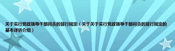 本文关于关于实行党政领导干部问责的暂行规定的基本详情介绍就讲解完毕,希望对大家有所帮助。
