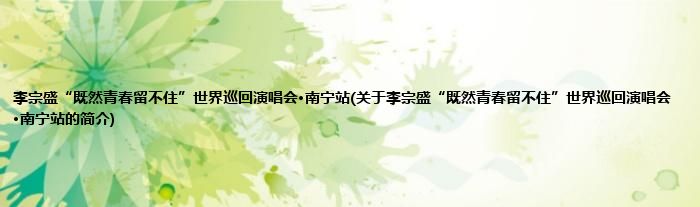 本文关于李宗盛“既然青春留不住”世界巡回演唱会·南宁站的简介就讲解完毕,希望对大家有所帮助。