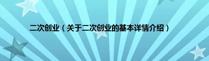 本文关于二次创业的基本详情介绍就讲解完毕,希望对大家有所帮助。