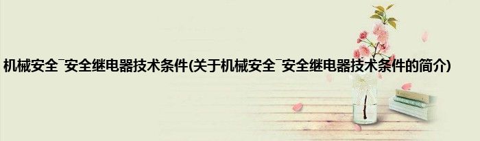 本文关于机械安全―安全继电器技术条件的简介就讲解完毕,希望对大家有所帮助。
