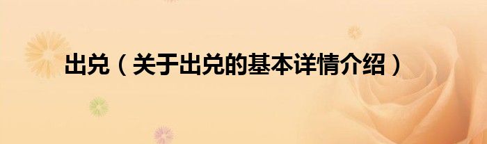 本文关于出兑的基本详情介绍就讲解完毕,希望对大家有所帮助。