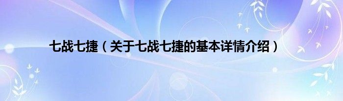 七战七捷(关于七战七捷的基本详情介绍)