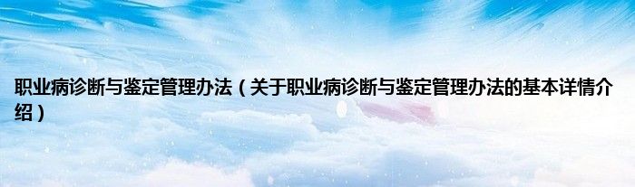 本文关于职业病诊断与鉴定管理办法的基本详情介绍就讲解完毕,希望对大家有所帮助。