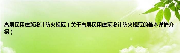 高层民用建筑设计防火规范(关于高层民用建筑设计防火规范的基本详情介绍)