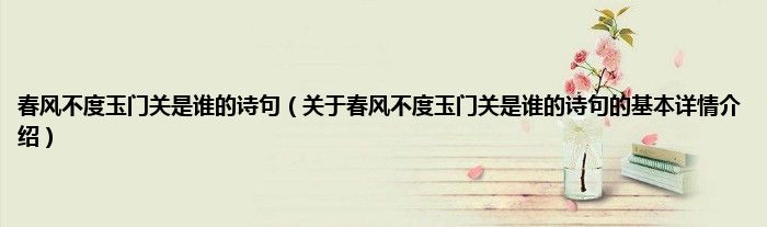 本文关于春风不度玉门关是谁的诗句的基本详情介绍就讲解完毕,希望对大家有所帮助。