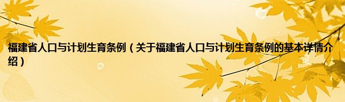 本文关于福建省人口与计划生育条例的基本详情介绍就讲解完毕,希望对大家有所帮助。