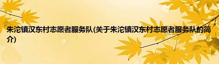本文关于朱沱镇汉东村志愿者服务队的简介就讲解完毕,希望对大家有所帮助。